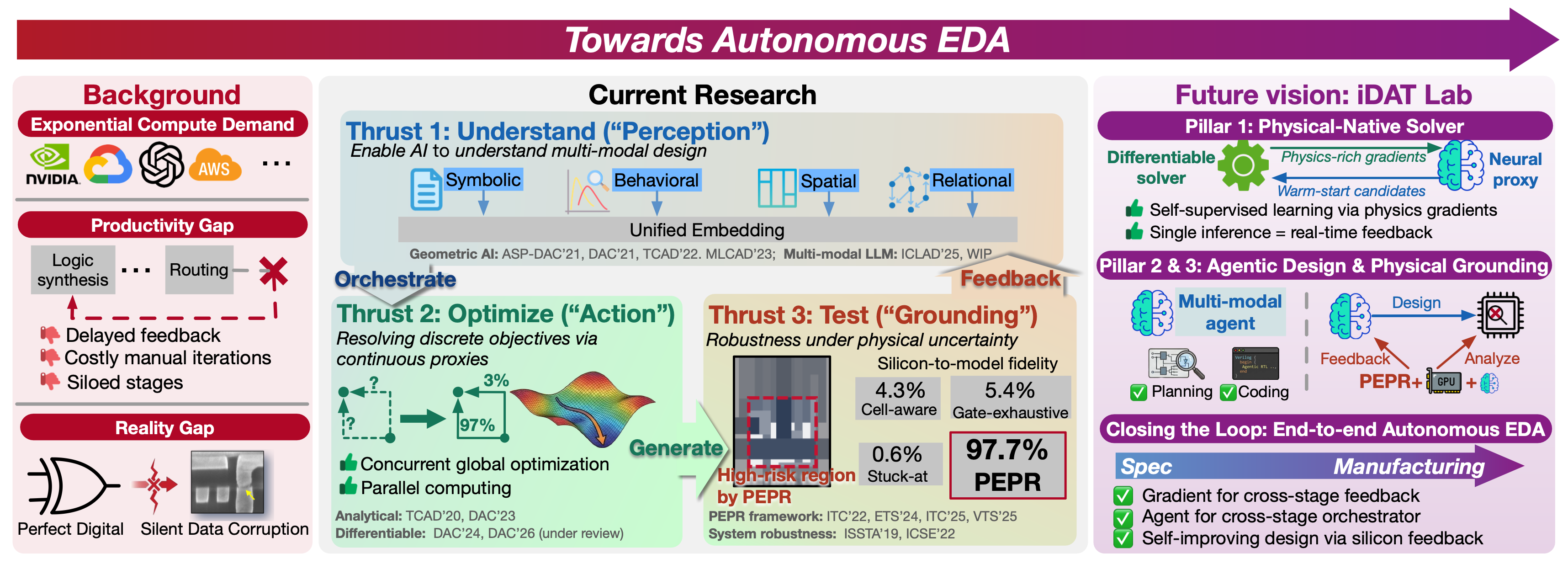 His research is driven by a vision of End-to-End Autonomous EDA, aiming to shift the human role from active "in-the-loop" intervention